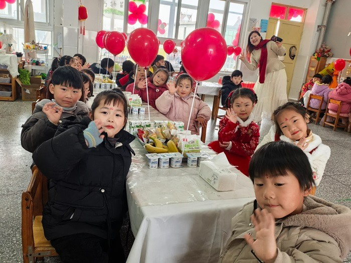 活动前期,各班教师巧手装扮教室,红灯笼、红气球错落点缀,福字、窗花随处可见,浓浓的年味扑面而来。本次联欢活动既有全园统一的欢乐环节,又有贴合不同年龄段幼儿的特色活动,兼顾仪式感与趣味性。活动伊始,新年打卡环节率先开启,孩子们身着喜庆服饰,在班级专属打卡点摆着可爱造型,一张张新年照定格童真笑脸,留存专属新年记忆。随后的新年自助餐更是让孩子们欢呼雀跃,各类点心、水果、小零食整齐摆放,孩子们自主取餐、文明分享,在品尝美味中感受分享的快乐。