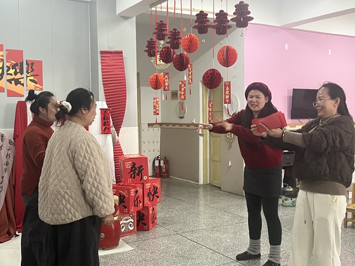 最令人期待的“你比划我猜”项目将活动推向高潮。比划的老师用夸张的肢体语言演绎词语,猜词的老师则在紧张又欢乐的氛围中不断尝试,现场掌声、笑声此起彼伏,整个活动室洋溢着轻松愉快的节日气息。